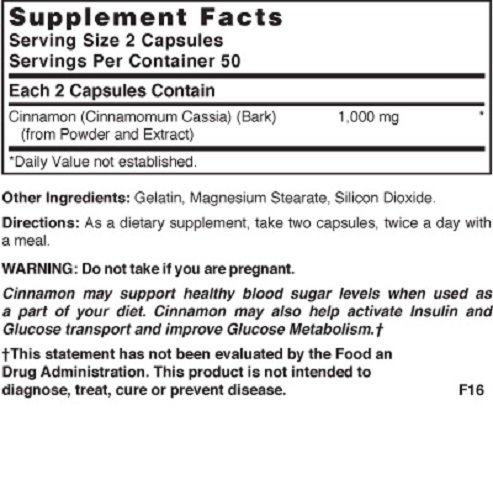 Product DescriptionNature's Blend Cinnamon Capsules. 1,000 mg per Serving size (2 capsules). 100 Count Per Bottle.0