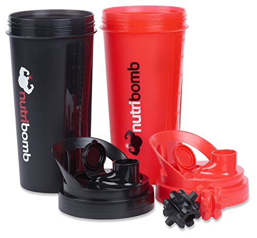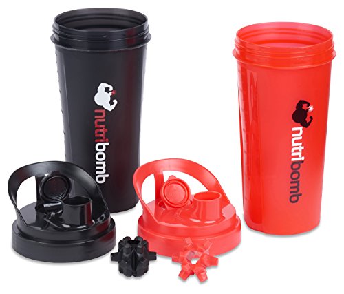 Nutribomb Thunderball Protein Shaker Bottle Supplement Shaker Cup Workout Shaker Meal Replacement Shaker (Red and Black combo)