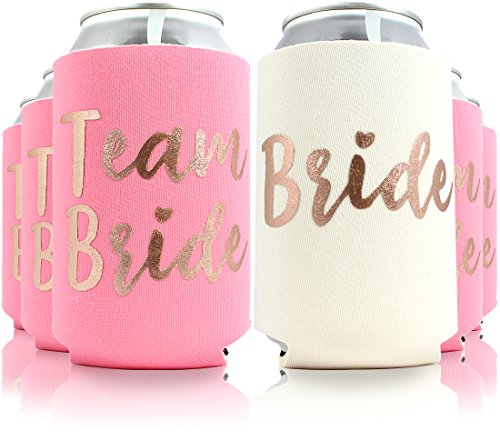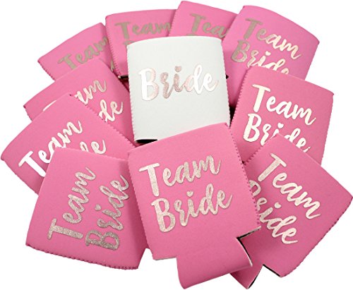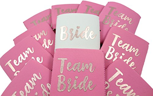 11pc Set Team Bride & Bride Drink Coolers for Bachelorette Parties, Bridal Showers & Weddings - 4mm Thick Bottle Cooler Sleeves aka Can Coolies aka...
