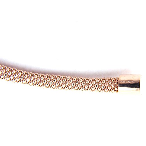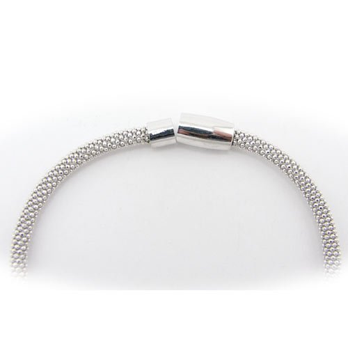 -. Title : Sterling Silver Faceted Flexible Diamond-Cut Magnetic Clasp Mesh Bracelet Italy