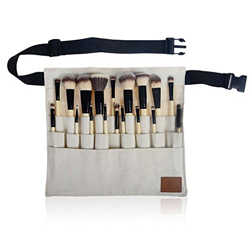 This stylish apron features a durable microfiber belt and a main pouch of three compartments capable of holding 18 makeup brushes at any one time. Waterproof and scratch resistant, this apron’s triple pouch design is perfect for the on-the-go makeup artist. Stores a variety of brushes with long or short handles. In this magnificent set you will find : Powder brush, slanted brush, buffer brush, blush brush, medium powder brush, foundation brush , blending brush, cream shadow brush, precious eye contour brush, concealer brush, eye shadow buffer brush, fine liner brush, eyeliner buffer, crease brush definer, flat eyeliner brush, flat all over eye shadow brush, lip brush, brow brush. Apron size when opened is about 12” in length and 11 inches in width. Once closed its 11” by 6”.Feature