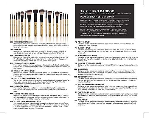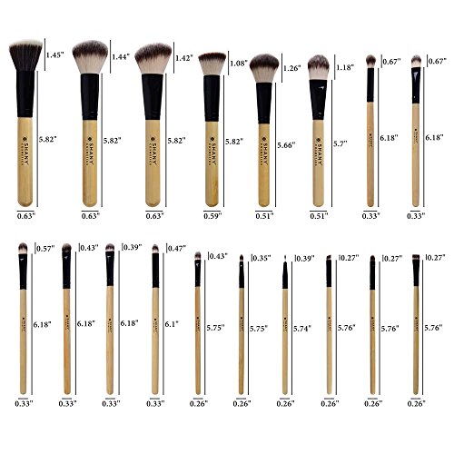 Includes 18 cosmetics brushes: powder brush, slanted brush, foundation brush, blush brush