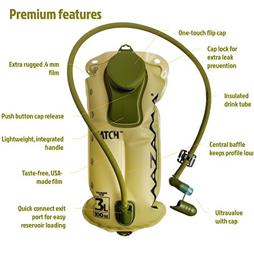 -. Title : Mazama - Hatch Tactical Hydration Reservoir - 3 liter - Tasteless & BPA-Free Replacement Water Bladder for Backpacks - USA Made Film
