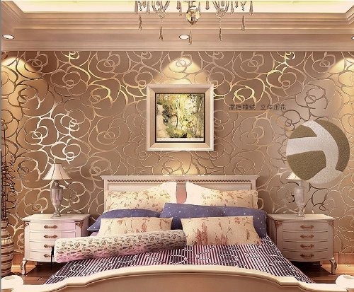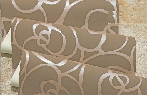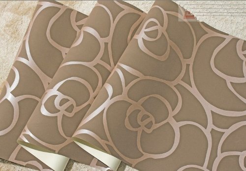 -. Title : QIHANG High-grade Rose Flower Pattern Thick Flocking Embossed Textured Wallpaper Roll Coffee Color 0.53m(1.73')10m(32.8')=5.3㎡(57 Sq.Ft)