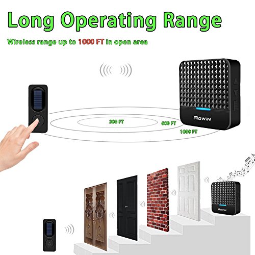 - 1. Long Rangs&Solar Powered: Wireless doorbell kit range up to 1000ft in open area, so don't worry the house is too big or aged people is out of action.and solar wireless doorbell is environment friendly solar, no power consumption