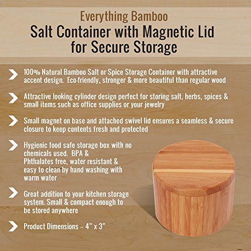 Everything Bamboo Salt, Condiment & Herb Box Container with Magnetic Lid for Secure Storage