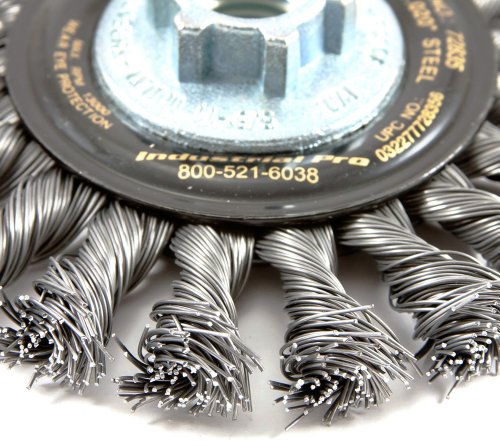 Forney 72835 Wire Wheel Brush, Industrial Pro Twist Knot with 5/8-Inch-11 and M14-by-2.0 Multi Arbor, 4-1/2-Inch-by-.020-Inch