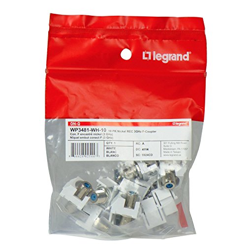 On-Q WP3481WH10 Contractor Nickel Recessed 3 GHz Keystone F-Connector (Pack of 10), White