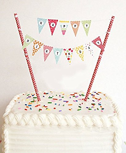 Happy Birthday Cake Pennant Flags Banner Cake Topper