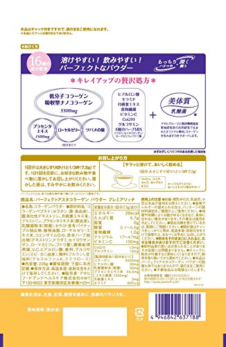 "Perfect Application collagen powder Premier rich 228g" is easy to drink melted cheap it is a collagen powder of 16 kinds of ingredients. Blended per serving collagen 5500mg the Placenta 1500mg. Other royal jelly also bird's nest hyaluronic acid ceramide has further compounded the beauty constitution lactic acid bacteria (R) ※. Please help us to every day of beauty and health maintenance. ...