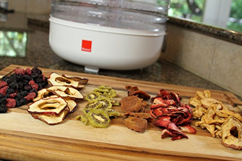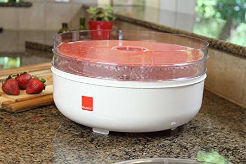 Save money and time by creating your own healthy or low carb snacks quickly and easily at home with the Ronco FD1005WHGEN 5-tray food dehydrator. It's a snap to whip up a batch of beef or turkey jerky, banana, pineapple or apple snacks, dried vegetables or herbs, homemade yogurt - or so much more. The included instructional booklet tells you how. A 10-year warranty backs it all up.Feature