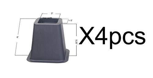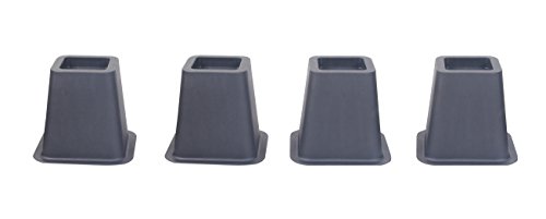 Studio : EASYGOING Publisher : EASYGOING Binding : Kitchen Product Description Elevate furniture with these bed risers. Modify your bed, chair, couch or table easily with this set of 4 bed risers. Each box of risers comes with 4 small bed risers Extra under-bed storage in an instant. Creating new storage space that's neatly out of sight. What is the weight limitation? Easygoing bed and furniture riser is made out of heavy duty super strong plastic. Get 5.25 inches of additional height to assist in the process of getting in and out of chairs and sofas. This Heavy Duty Bed Risers Set has the following features: ? Safe to use on Hardwood floors. Won't Scratch or Dent them. ? Attractive Black Finish that goes well with all furniture Multi functional, can be used in your home or office! Suffer from Acid Reflux? Use 2 of the units at the head of your bed to help elevate the bed and reduce the acid. These bed risers are perfect for any dorm room setting. 100 percent money back guarantee! 0