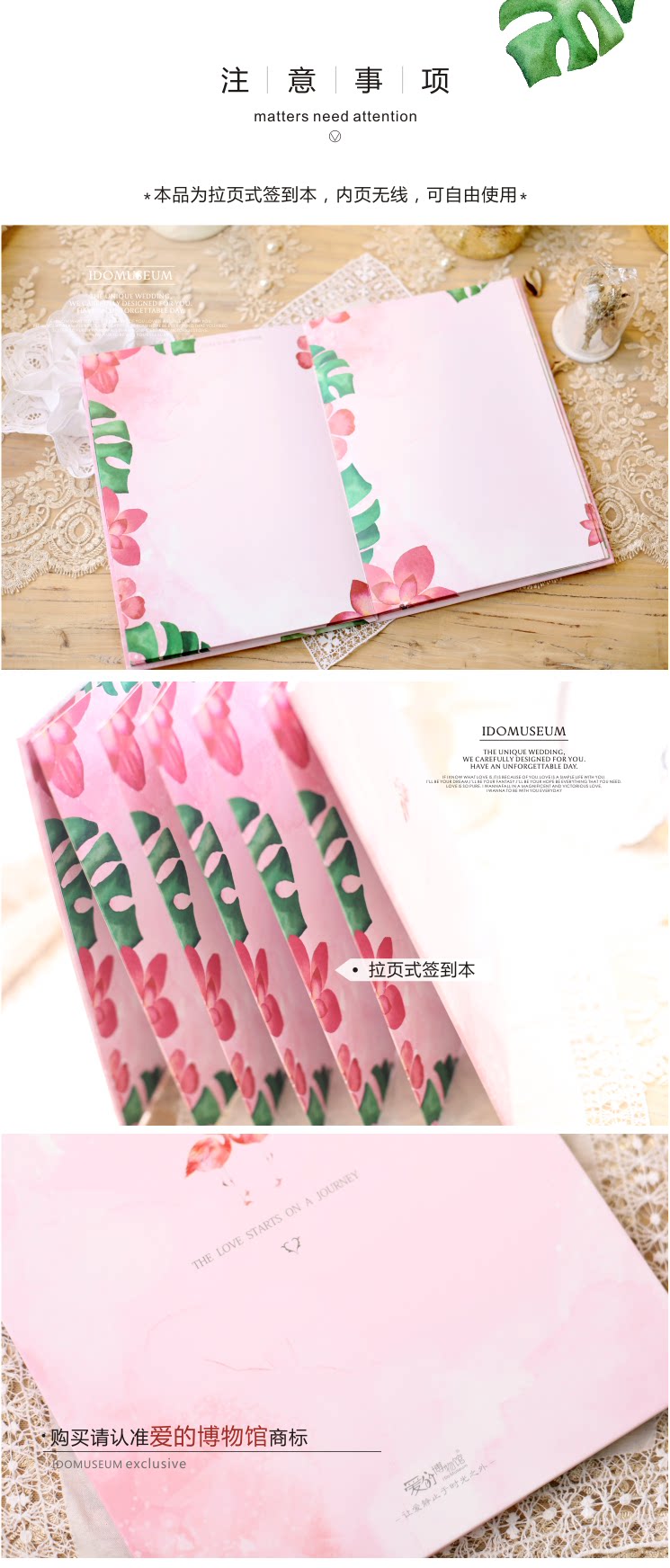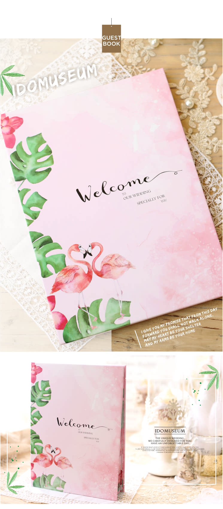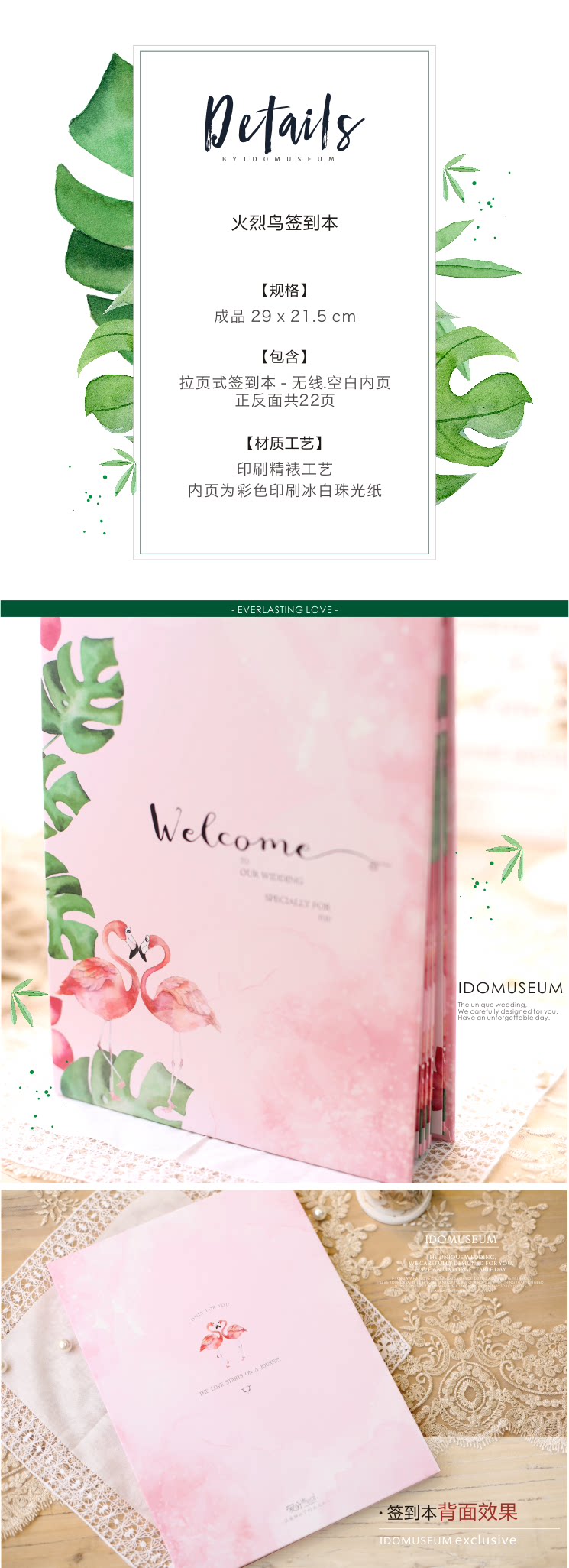 爱的博物馆の森系火烈鸟结婚礼金簿粉色婚礼签到册签到本签名册