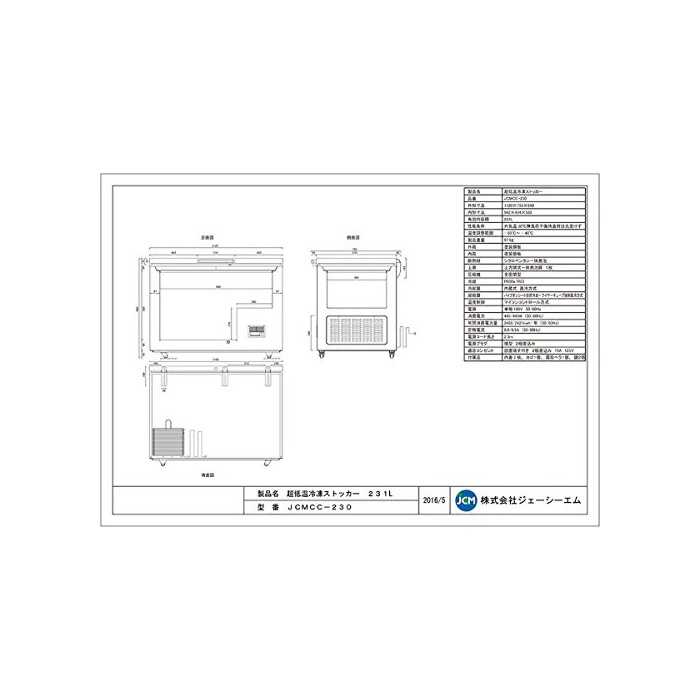 원본상품명: 超低冷凍ストッカ【JCMCC-230】 JCMCC-230
