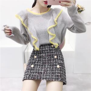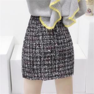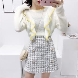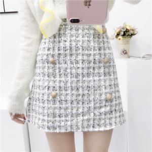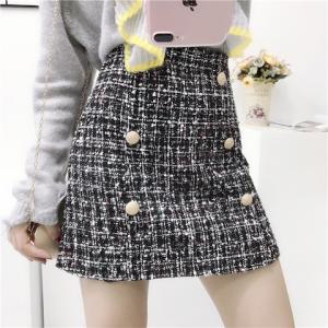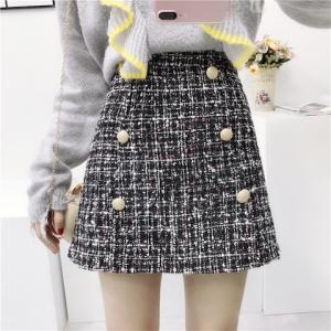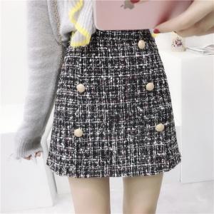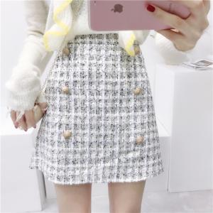 ハイウエスト ツイードスカート ミックスカラー レトロ フロントボタン ミニ丈スカート ハイウエストスカート 台形