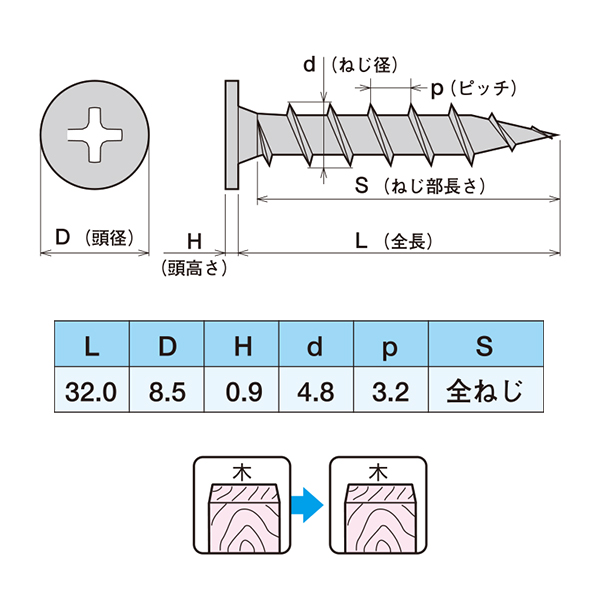 ●木+木 超極薄頭(驚異の0.9mm)と密着性 不陸を完全解消