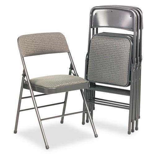 Product Description Compliance Standards:Meets or exceeds ANSI/BIFMA standards Global Product Type:Chairs-Stacking/Folding/Nesting Recommended Applications:Breakroom Hospitality Seat/Back Color:Cavallaro Gray Arms Included:No Caster/Glide/Wheel:Non-marring leg caps. Overall Width Maximum:18" Base Material:7/8" Tubular Steel Overall Depth Maximum:19" Quantity:4 per carton Overall Height Maximum:29 1/2" Base Color:Dark Gray Seat Height Maximum:18" Seat Material:Commercial Grade Fabric Back Material:Commercial Grade Fabric Stacking Density:Foldable Pre-Consumer Recycled Content Percent:0% Post-Consumer Recycled Content Percent:0% Total Recycled Content Percent:0% 0