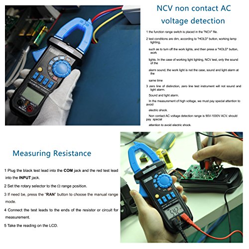 Digital Clamp Multimeter,LESHP 600A Auto-Ranging Digital Clamp On Meter & Multimeter with NCV,AC/DC Voltage,Resistor,Diode,AC current