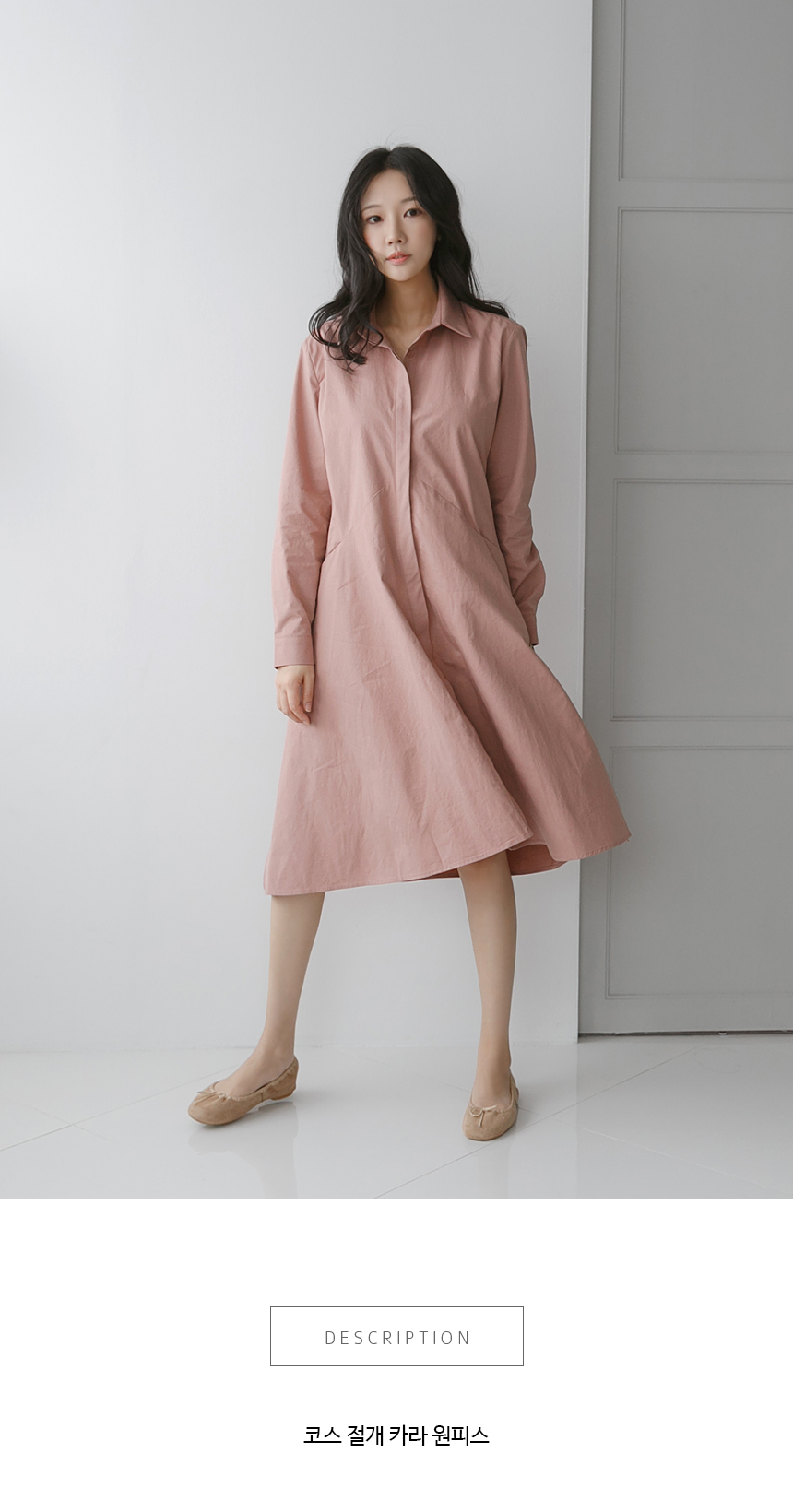 봄기운이 느껴지는 사각 한 바이오 워싱 코튼 100%의 소재감에 세련된 프렌치 시크 스타일의 절개 A라인 원피스랍니다~