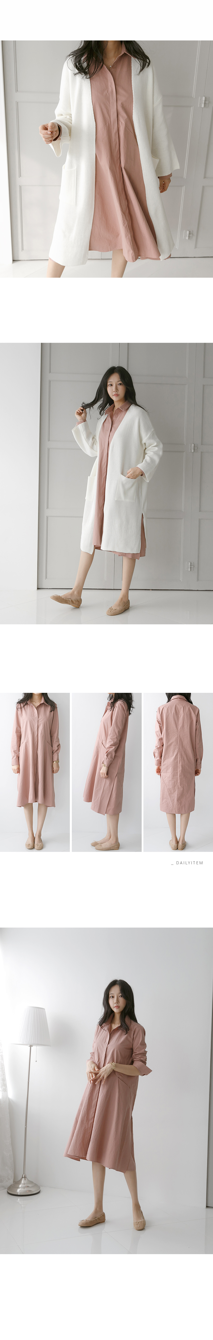 내추럴하게 소매 살짝 접어주고 자연스러운 구김이 멋스러운 원피스로 단독으로 혹은 가디건 등과 함께 코디하기 좋답니다^^