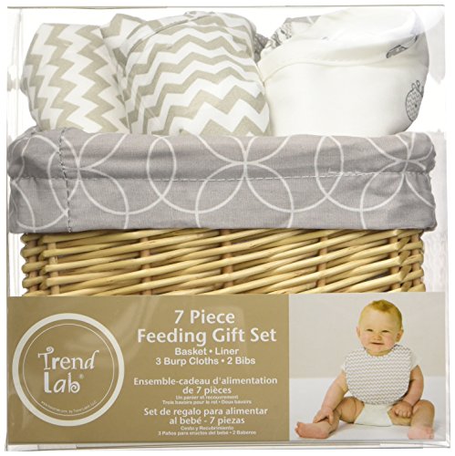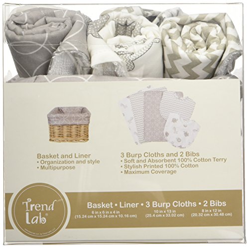 Trend Lab 7 Piece Bib & Burp Feeding Basket Gift Set, Safari Gray