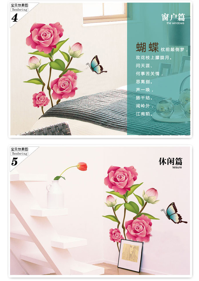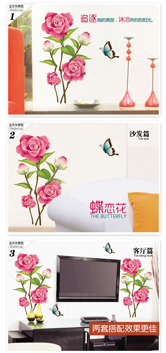 蝶恋花墙贴客厅电视背景墙贴纸卧室浪漫床头婚房装饰墙画壁纸防水