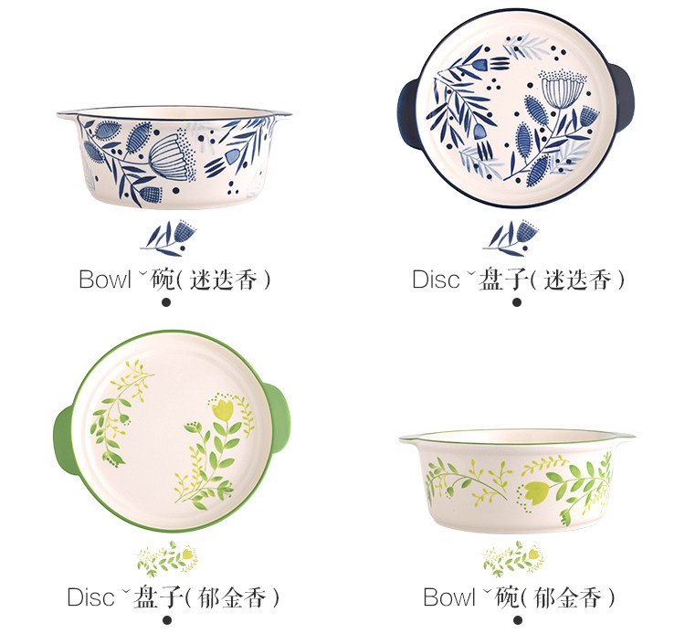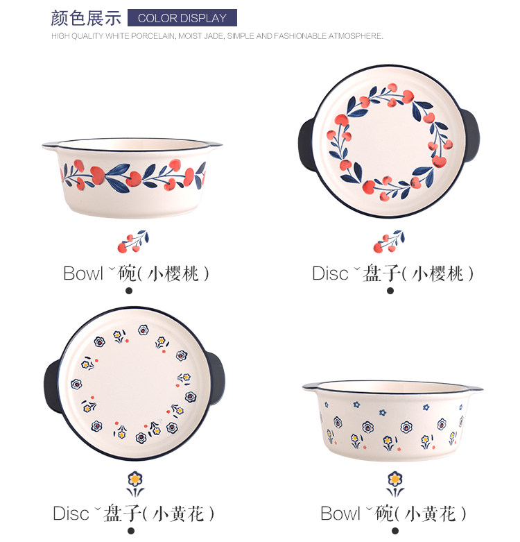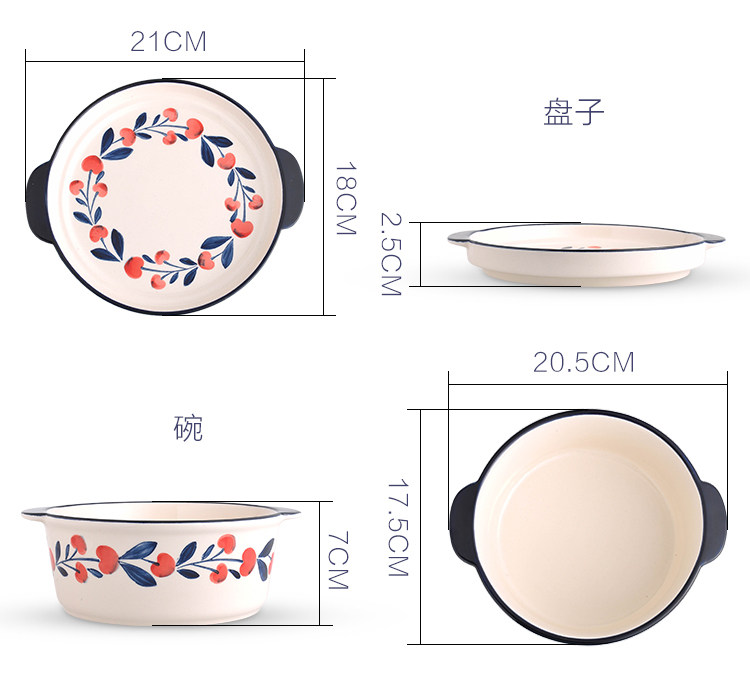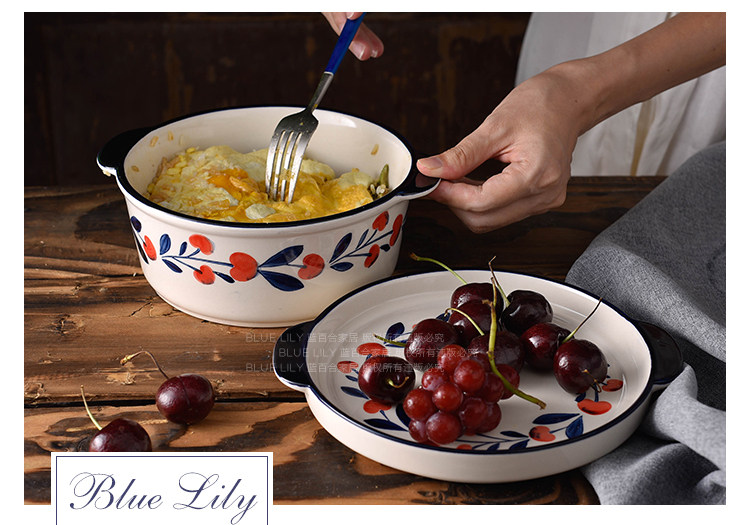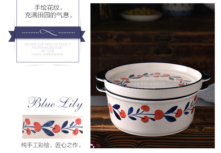 浆果小樱桃美式创意双耳锅田园手绘陶瓷汤碗西餐意面碗早餐泡面碗