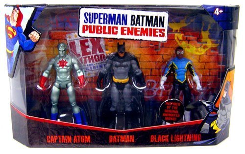 -. Feature : Batman Superman Public Enemies 3 3/4" action figure line from Mattel / This 3-pack includes 3 3/4 inch action figures of Captain Atom, Batman and Black Lightning / For Ages 4 & Up