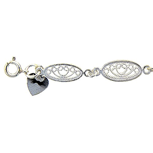 -. Title : Sterling Silver Anklet with Filigree Oval Links, fits 9 - 10 inch ankles