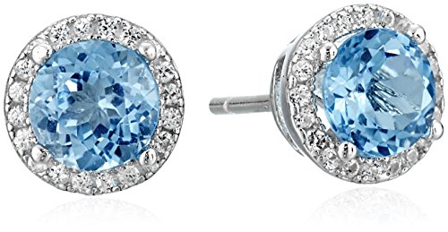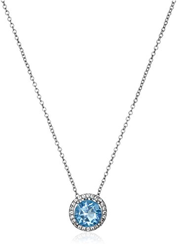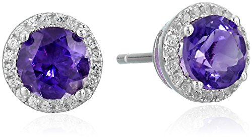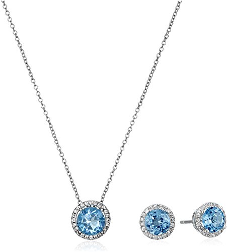 -. Title : Sterling Silver Gemstone and Created White Sapphire Halo Earrings and Pendant Necklace Set, 18"