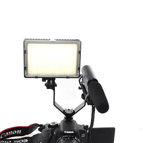 Goliton Camera DSLR Triple Mount Hot Shoe V-shape Mount Bracket for LED Video Lights Microphones - Black