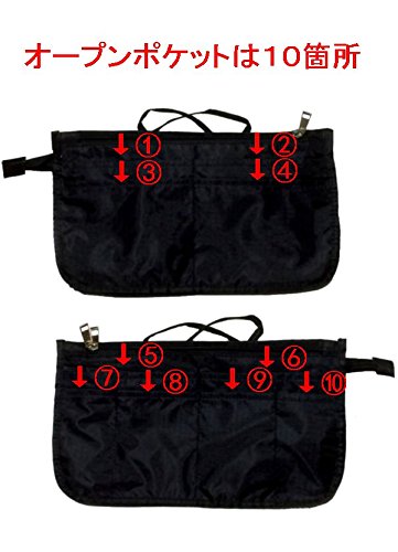 10 open pockets / 3 zipper pockets (central part: open 2 / zipper type 1)