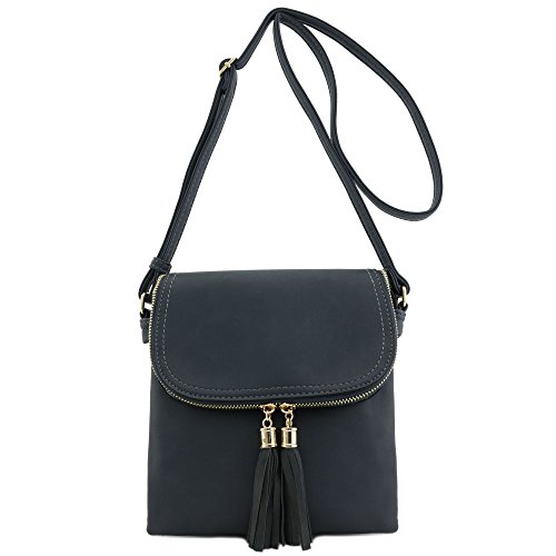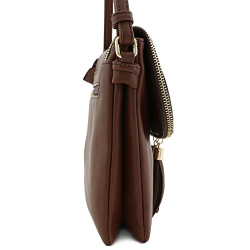 -. Title : Flap Top Double Compartment Crossbody Bag with Tassel Accent