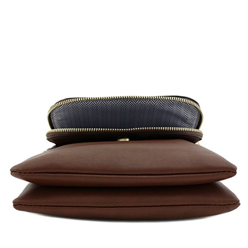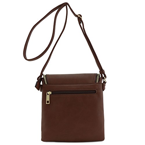 -. Feature : 7.5" (W) x 8.75" (H) x 2" (D) / 2 zippers & magnetic snap button flap closure / Adjustable shoulder strap with 24.5" drop / Faux leather & gold tone hardware / 1 zipper pocket & 1 open pocket inside