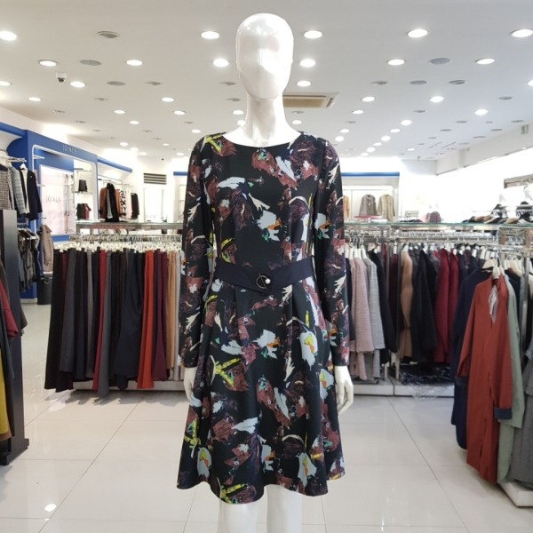 프린팅 진주벨트포인트 폴리스판 플레어 원피스-CA7W1-WKO030-565