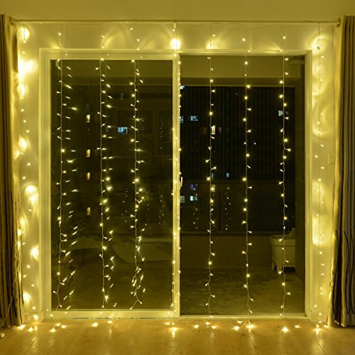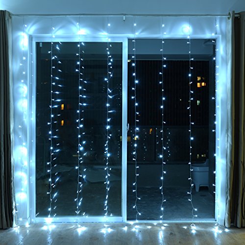 High Brightness - 9.8ft *9.8ft 300 LED curtain strings of lights brighten up the happiness atmosphere inside or outside; 10 string lights in total, widespread lighting source.