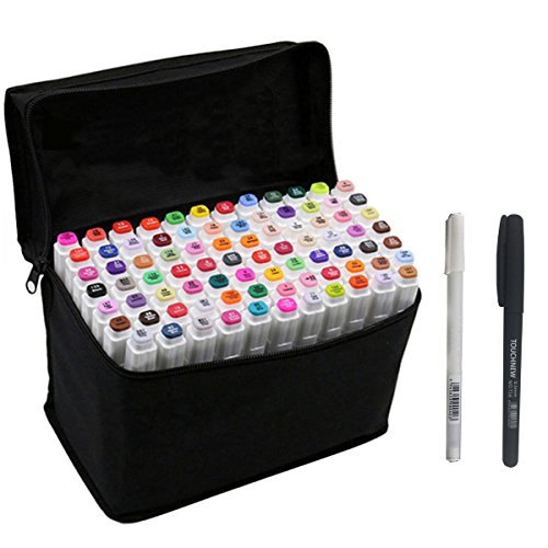 RONGXIANG 80 Colors Set Art Dual Tips Marker Pens with Fine and Broad Tip Sketch Mark Pen (80)