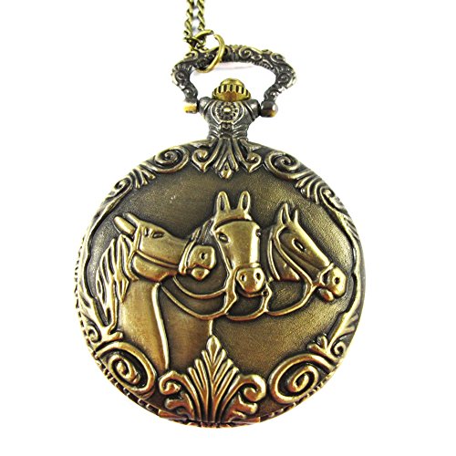 -. Title : YouYouPifa Bronze Sculpture Three Horse Pattern Relief Big Pocket Watch