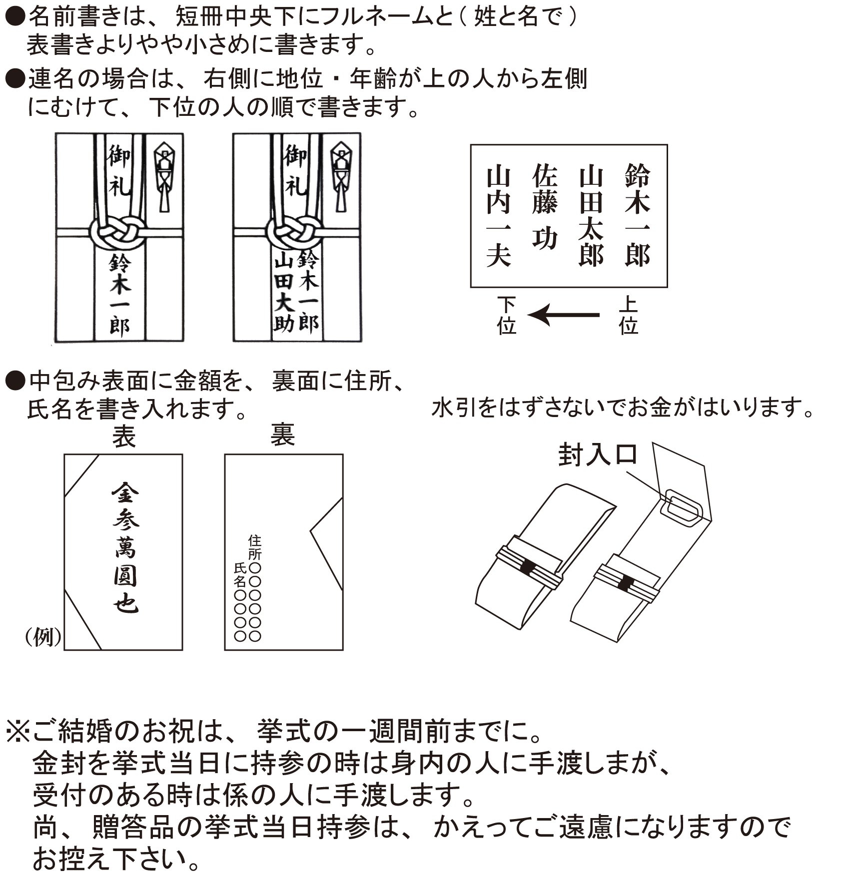 On the back side of the package, how to write a gift bag (how to write a wedding gift) is stated.