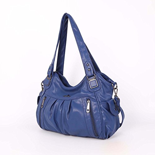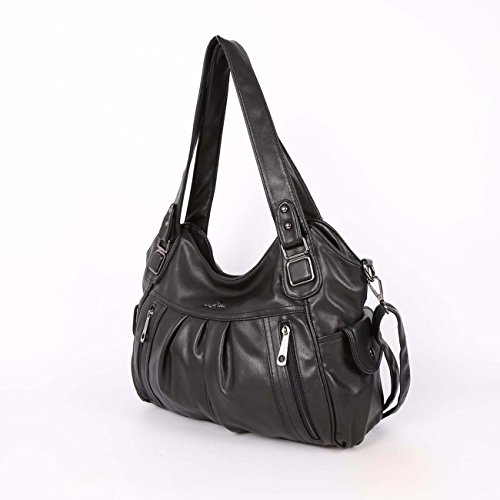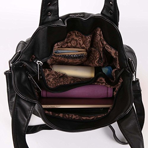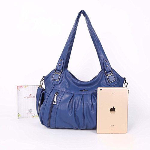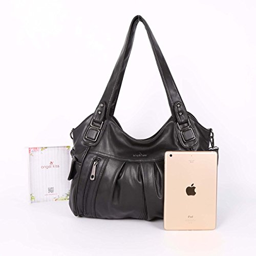 -. Title : Angelkiss 2 Top Zippers Large Capacity Handbags Washed Leather Purses Shoulder Bags Women 0062