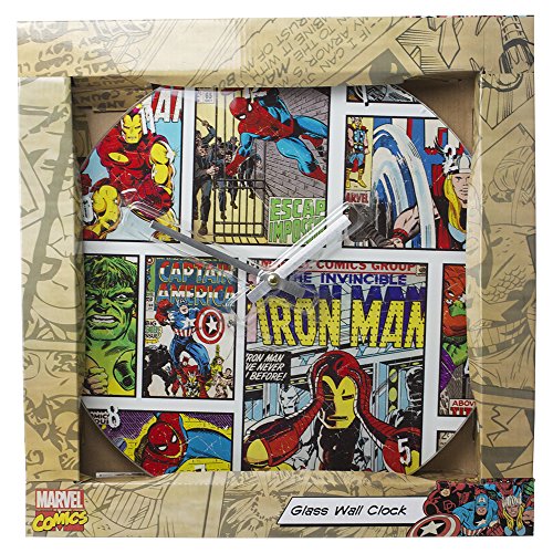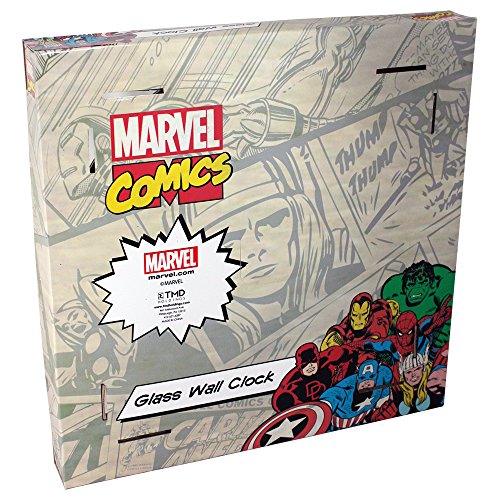 - Feature : Official Licensed by Marvel Comics / 13.75" Mixed Character Cover Art Glass Wall Clock / Classic "open face" design with vibrant photo-quality artwork and metal hands / High-precision 100% quartz clock / Proudly Designed In America