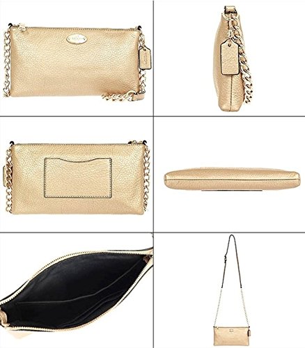 -. Title : COACH Quinn In Pebble Leather Chain Strap F52709 Gold Cross Body Bag