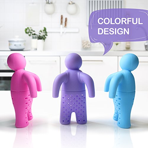 SILICONE TEA INFUSER FOR LOOSE TEA - SET OF 3 CUTE FUNNY DIFUSSER FILTER FOR LEAF HERBAL TEA - ULTIMATE TEA MAN STRAINER STEEPER PERFECT FOR ANY CUP OR MUG - MAKE THE PERFECT CUP OF TEA