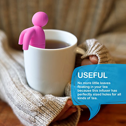 • EASY TO CLEAN - Take off the top part and rinse, washing is that simple. Other tea man infusers are big, difficult and tedious to clean. Our fun strainer empties and cleans up easily with running water. Dishwasher safe. Great novelty, perfect gift idea.