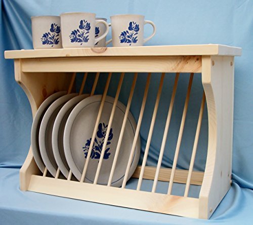 -. Brand : Old Yankee Workshop -. Color : Unfinished -. EAN : 6527853746861 -. Feature : Holds up to 12 dinner plates / Made of solid wood / Flat top for display / Place on flat surface or hang on wall / Unfinished Pine -. Label : Old Yankee Workshop -. Manufacturer : Old Yankee Workshop -. PackageQuantity : 1 -. ProductGroup : Kitchen -. ProductTypeName : KITCHEN -. Publisher : Old Yankee Workshop -. Studio : Old Yankee Workshop -. Title : Wood Plate Rack Dish Organzier