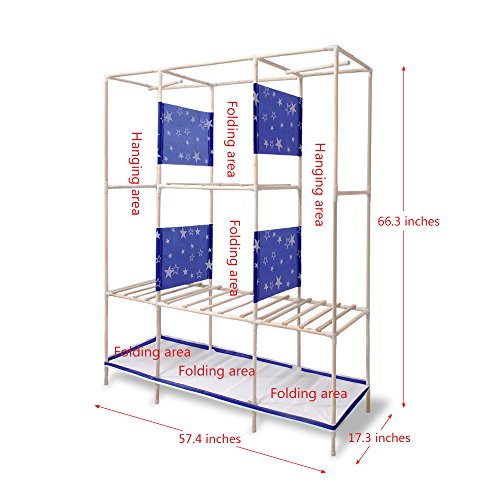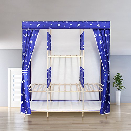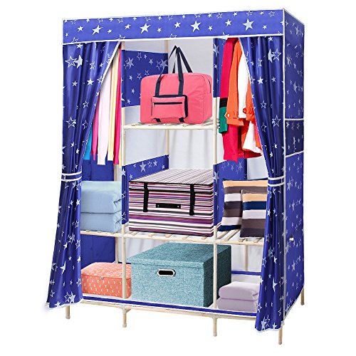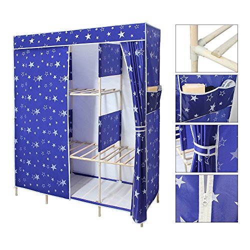 NEX Wardrobe Collapsible with Wooden Rack Armoire Removable Commode for Home Use Storage Closet(Blue+Star)