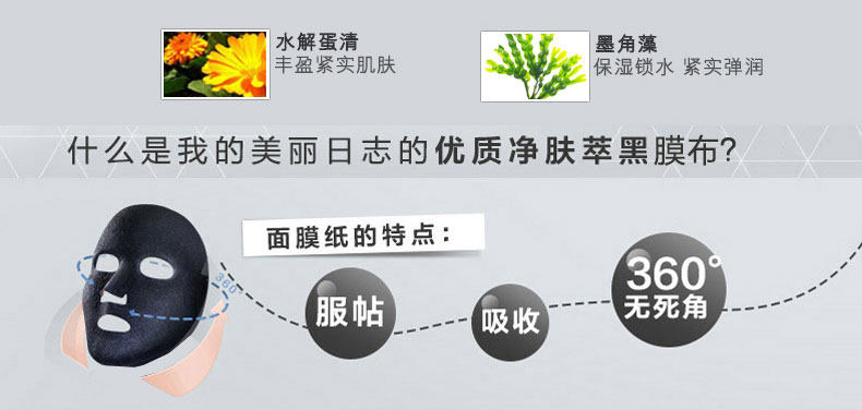 我的美丽日志/日记 男士补水保湿清洁黑面膜3D玻尿酸收缩毛孔正品