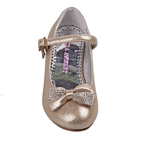 -. Binding : Apparel -. Brand : Laura Ashley Girls -. Department : girls -. Feature : Easy Care; Spot Clean / Mid-Sized Heel and Decorative Strap / Sequined Bo Over the Toe / Easy Slip On and Off with Strap for Stay and Comfort / Comfortable Insoles; Please Reference the Product Description for More Details -. ProductGroup : Shoes -. ProductTypeName : SHOES -. Title : Laura Ashley Girls Mary Jane Mid Heel Dress Shoe with Rhinestone Bow (Toddler, Little Kid, Big Kid)
