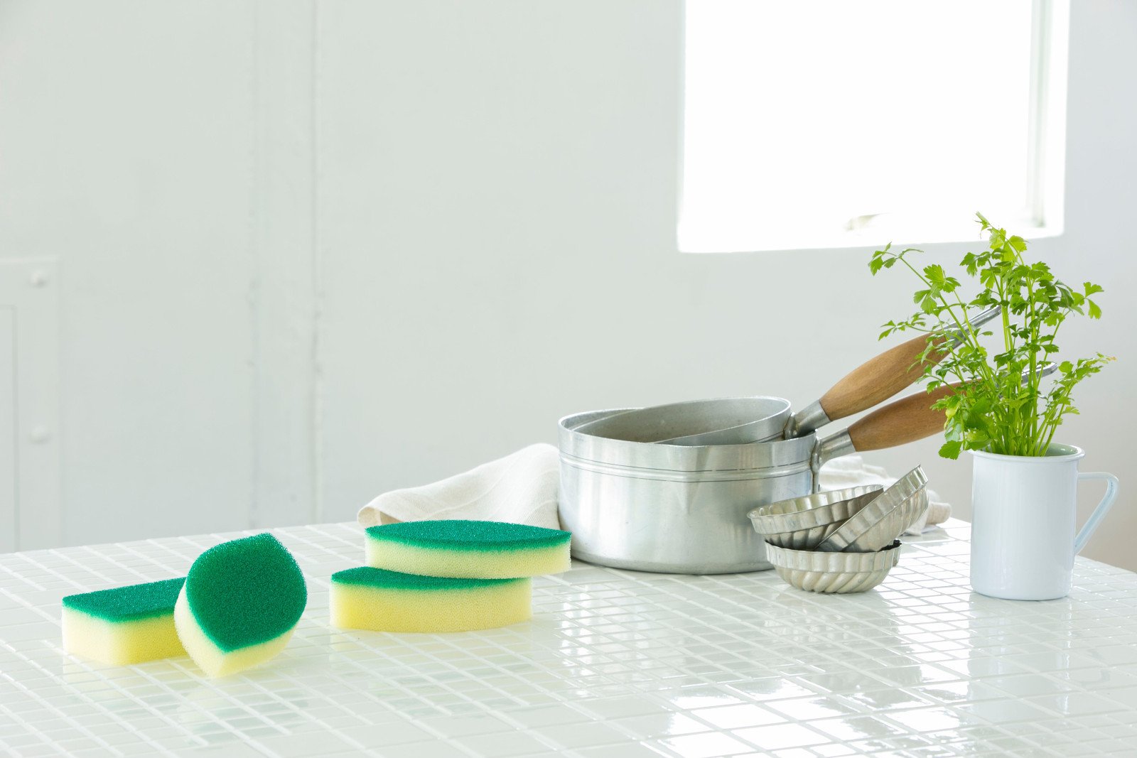 Kitchen sponge sticking to simplicity, cleanliness and ease of holding