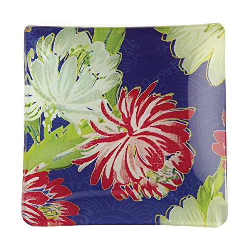 -. Feature : Decorative glass dish / 4.5-inch square; Hand wash only / A refreshingly Floral mix of Fuchsia, Purple and Green / Perfect Size for soap, candles and small items / Look to Mudlark for Paper products, handcrafted soaps and candles that are both beautiful and environmentally Smart